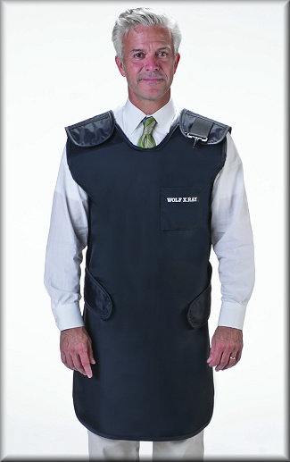 scrub-suit and sterile gown, all the surgeon has to do is flip back the two shoulder tabs and the apron falls to the